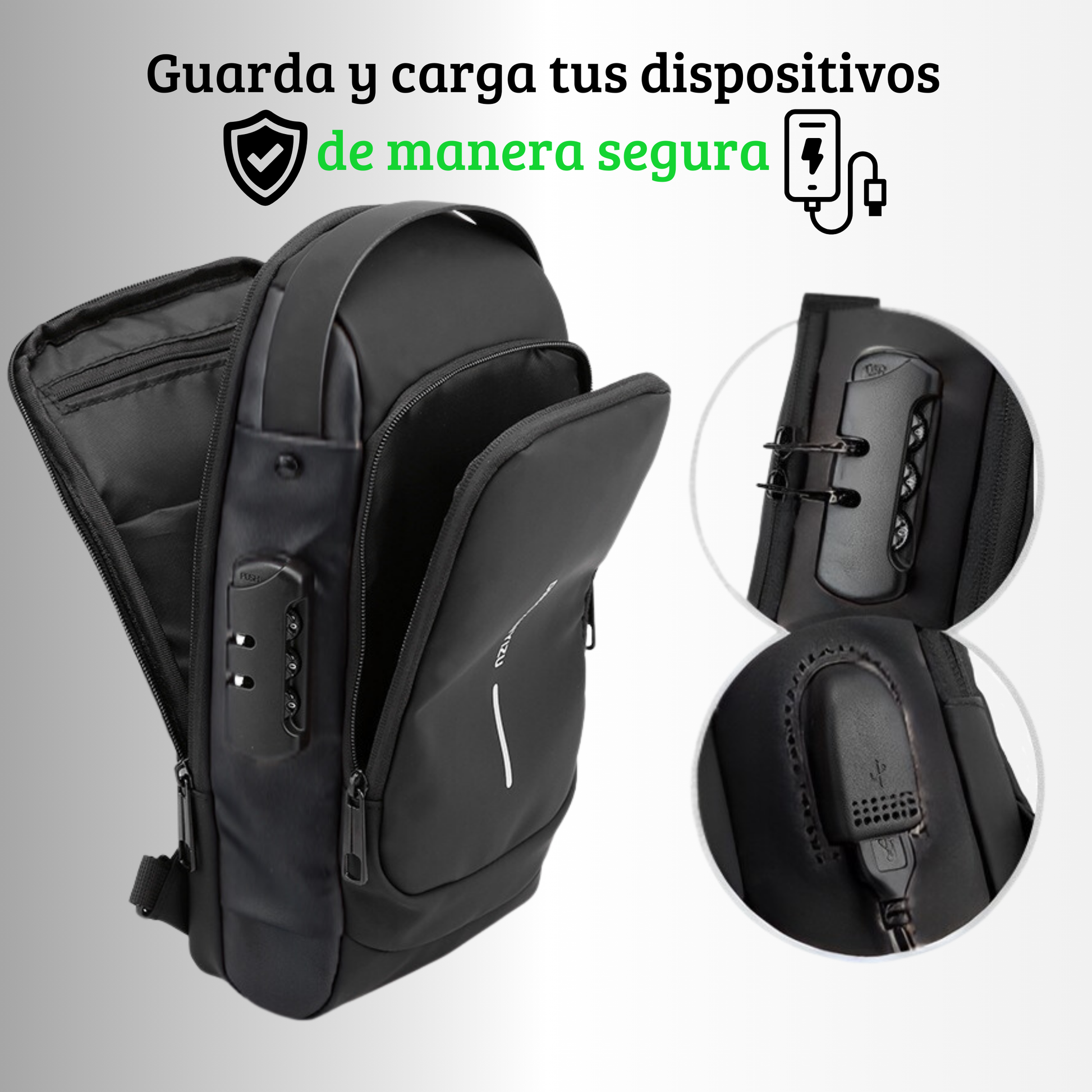 "Ideal para viajar, con múltiples compartimentos y un sistema antirrobo que me da mucha tranquilidad."